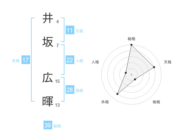 井坂 広暉さんの総格は39画の5点!