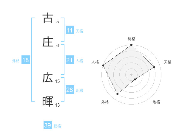 古庄 広暉さんを姓名の画数から五運を鑑定