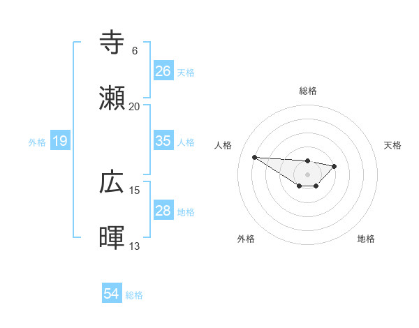寺瀬 広暉さんの外格は19画の1点!