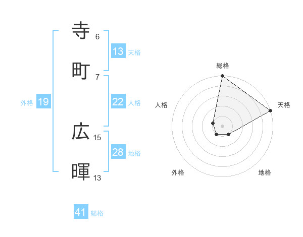 寺町 広暉さんを姓名の画数から五運を鑑定