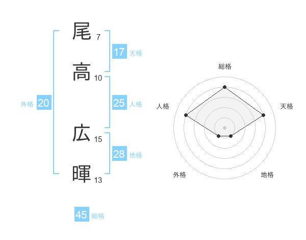 尾高 広暉さんの天格は17画の4点!
