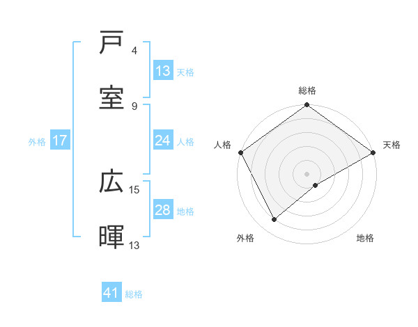 戸室 広暉さんの外格は17画の4点!