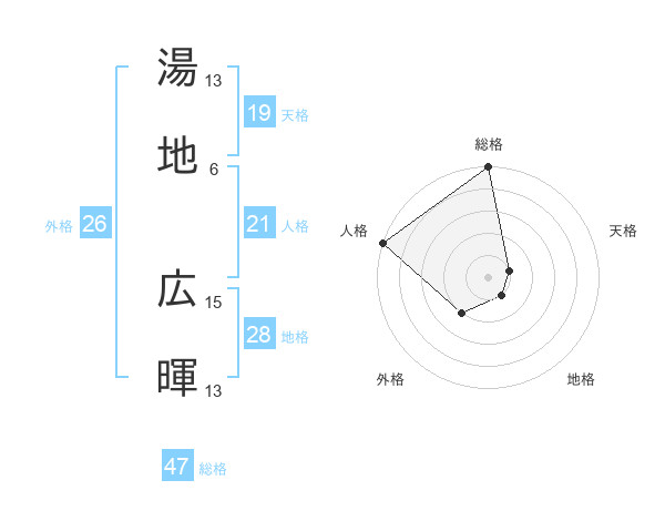 湯地 広暉さんを姓名の画数から五運を鑑定