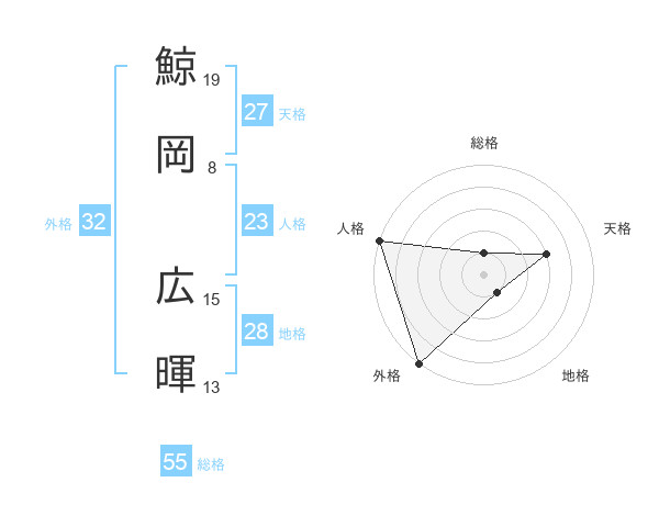 鯨岡 広暉さんを姓名の画数から五運を鑑定