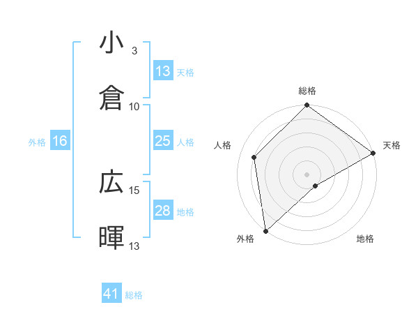小倉 広暉さんを姓名の画数から五運を鑑定