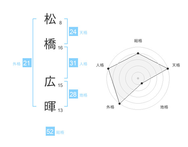 松橋 広暉さんを姓名の画数から五運を鑑定