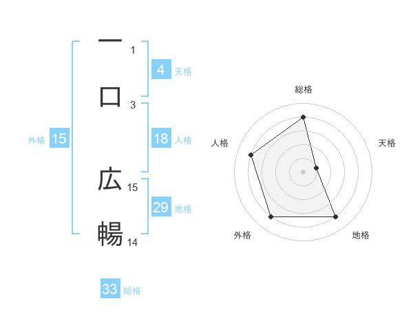 一口 広暢さんの地格は29画の4点!
