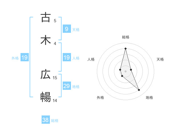 古木 広暢さんの総格は38画の4点!