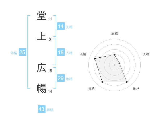 堂上 広暢さんを姓名の画数から五運を鑑定