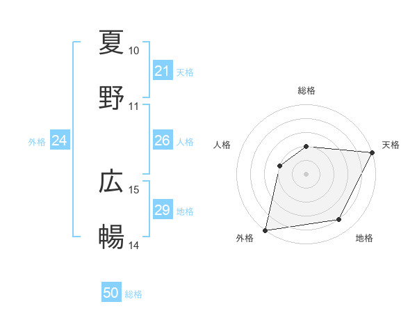 夏野 広暢さんを姓名の画数から五運を鑑定