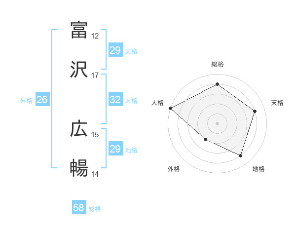 富沢 広暢さんの総格は58画の4点!