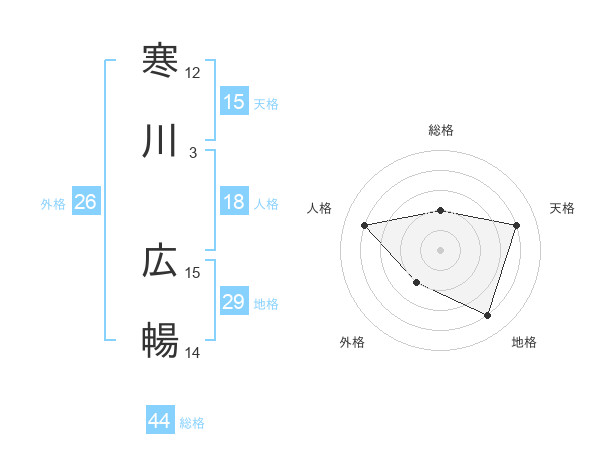 寒川 広暢さんの総格は44画の2点!