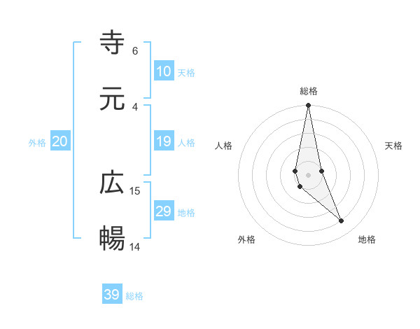 寺元 広暢さんを姓名の画数から五運を鑑定