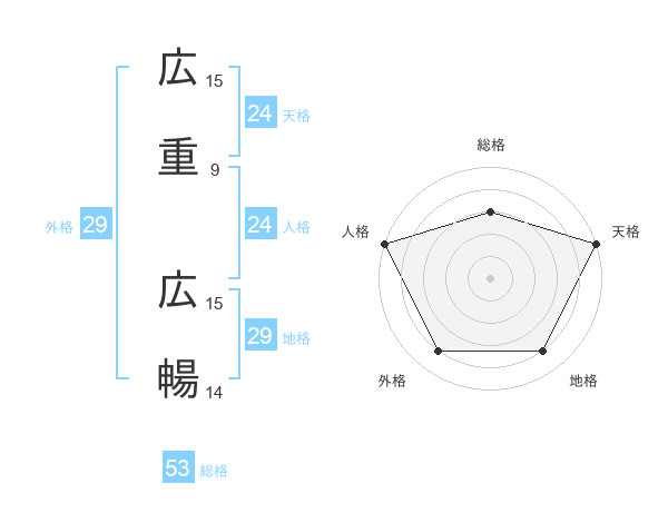 広重 広暢さんの総格は53画の3点!