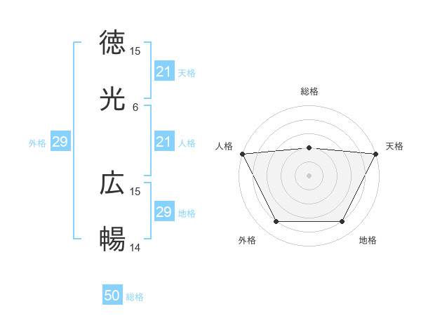 徳光 広暢さんを姓名の画数から五運を鑑定