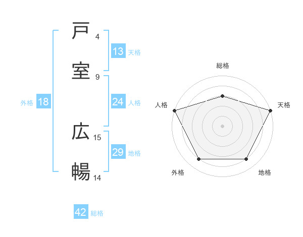 戸室 広暢さんを姓名の画数から五運を鑑定