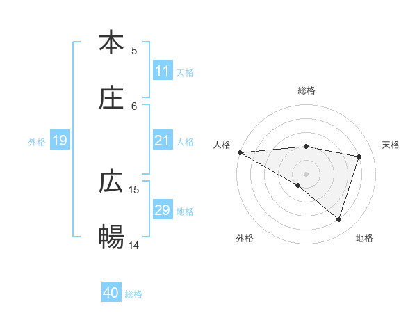 本庄 広暢さんの総格は40画の2点!