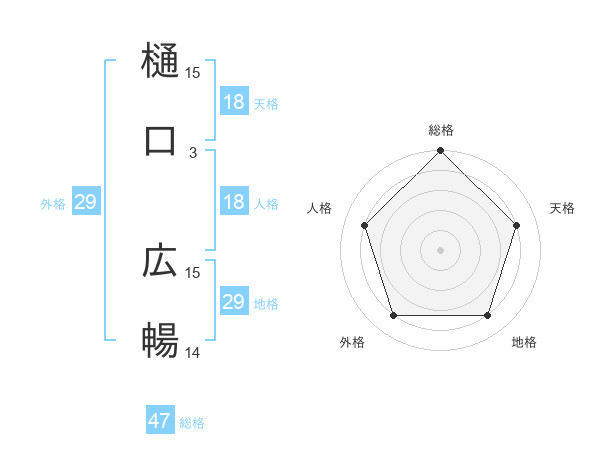 樋口 広暢さんの総格は47画の5点!