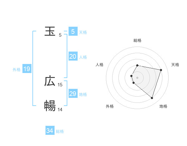 玉 広暢さんの総格は34画の2点!
