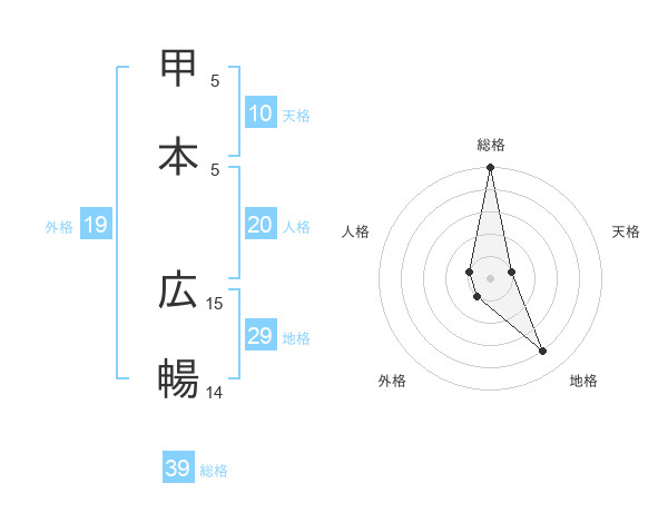 甲本 広暢さんの総格は39画の5点!