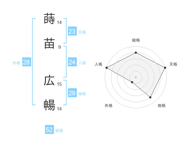 蒔苗 広暢さんの天格は23画の5点!