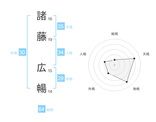諸藤 広暢さんの総格は64画の1点!