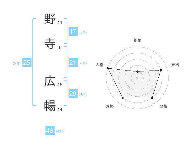 野寺 広暢さんを姓名の画数から五運を鑑定