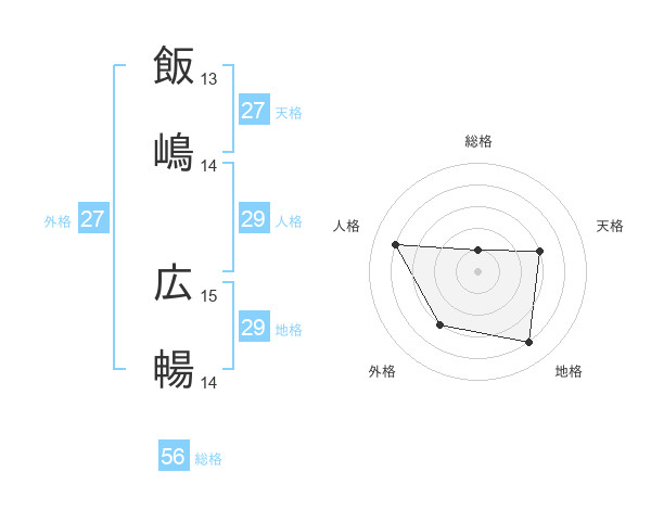 飯嶋 広暢さんの総格は56画の1点!