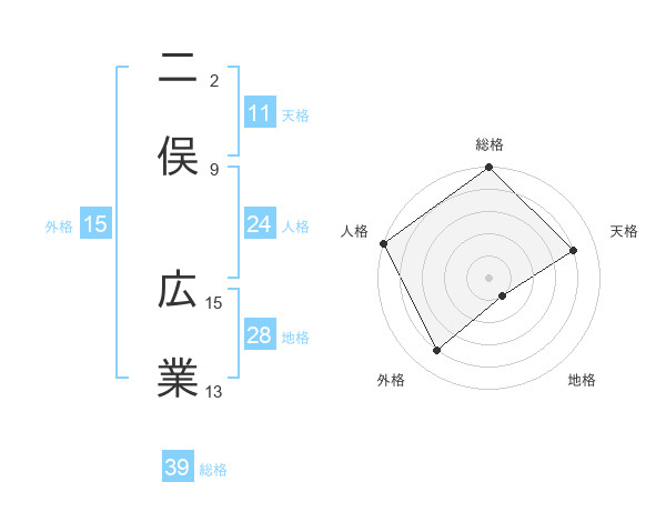 二俣 広業さんの総格は39画の5点!