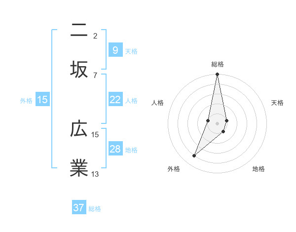 二坂 広業さんの総格は37画の5点!