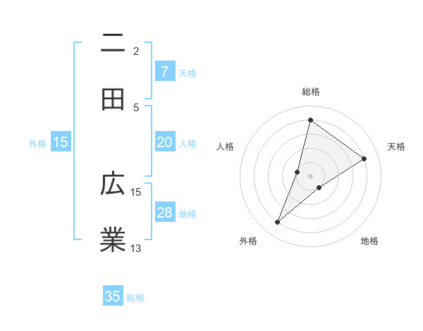 二田 広業さんの総格は35画の4点!