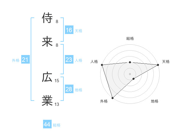 侍来 広業さんの総格は44画の2点!