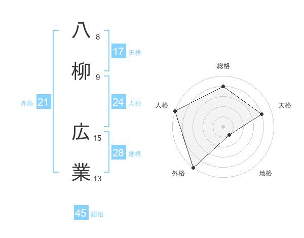 八柳 広業さんの天格は17画の4点!
