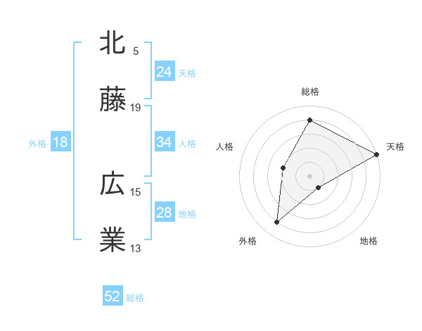 北藤 広業さんの総格は52画の4点!