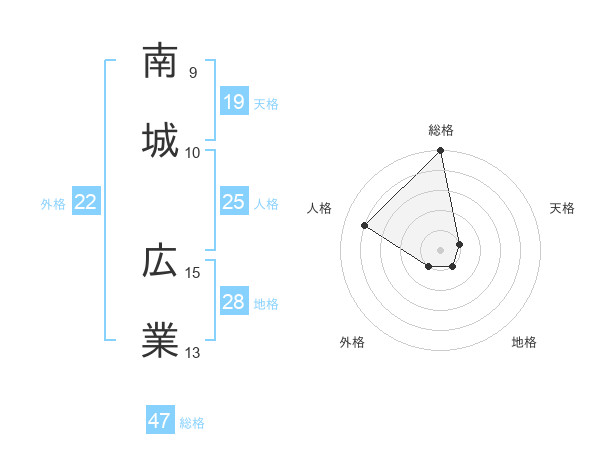 南城 広業さんの総格は47画の5点!