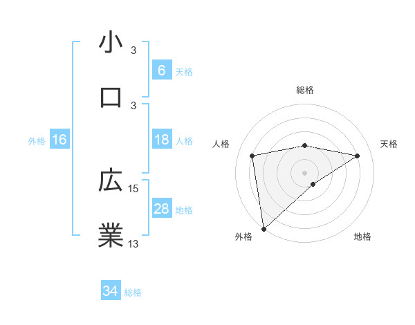 小口 広業さんの総格は34画の2点!
