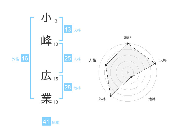 小峰 広業さんの総格は41画の5点!