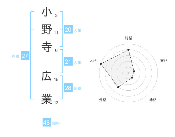 小野寺 広業さんの総格は48画の4点!