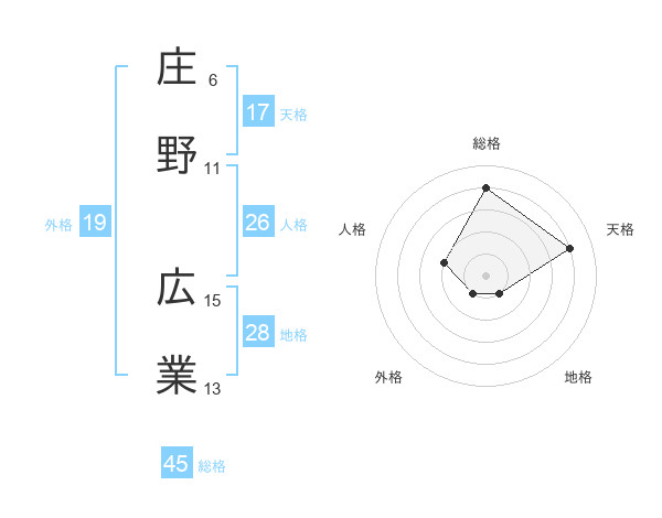 庄野 広業さんの総格は45画の4点!