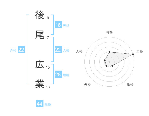 後尾 広業さんの外格は22画の1点!