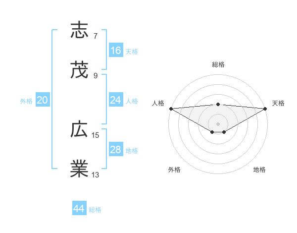 志茂 広業さんの総格は44画の2点!