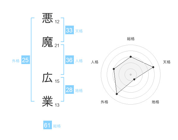 悪魔 広業さんを姓名の画数から五運を鑑定