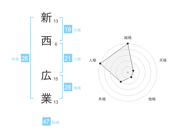 新西 広業さんの総格は47画の5点!