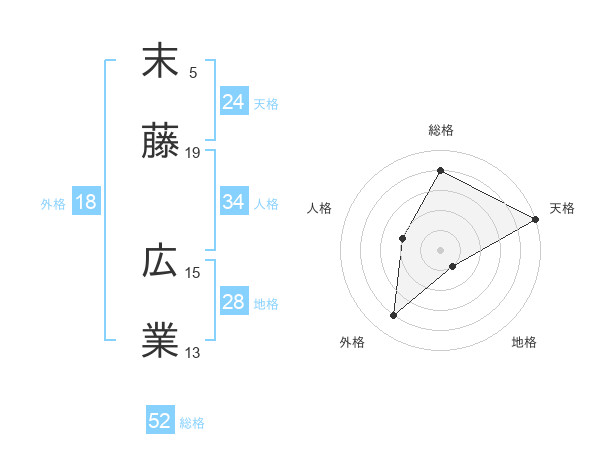 末藤 広業さんの総格は52画の4点!