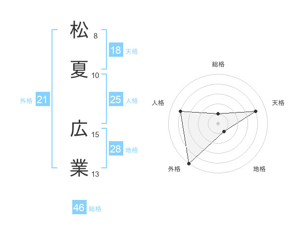 松夏 広業さんの総格は46画の1点!