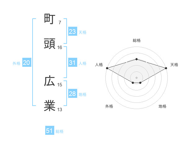 町頭 広業さんの総格は51画の3点!
