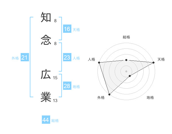 知念 広業さんの総格は44画の2点!