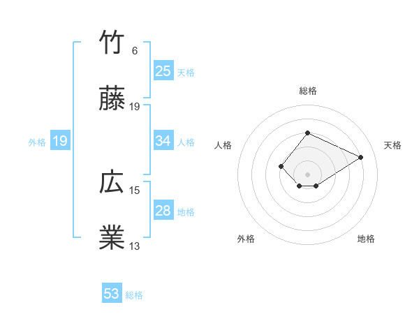竹藤 広業さんの総格は53画の3点!