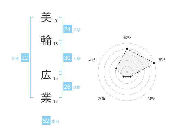 美輪 広業さんの総格は52画の4点!