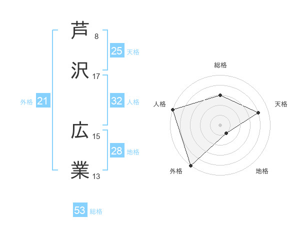 芦沢 広業さんの総格は53画の3点!